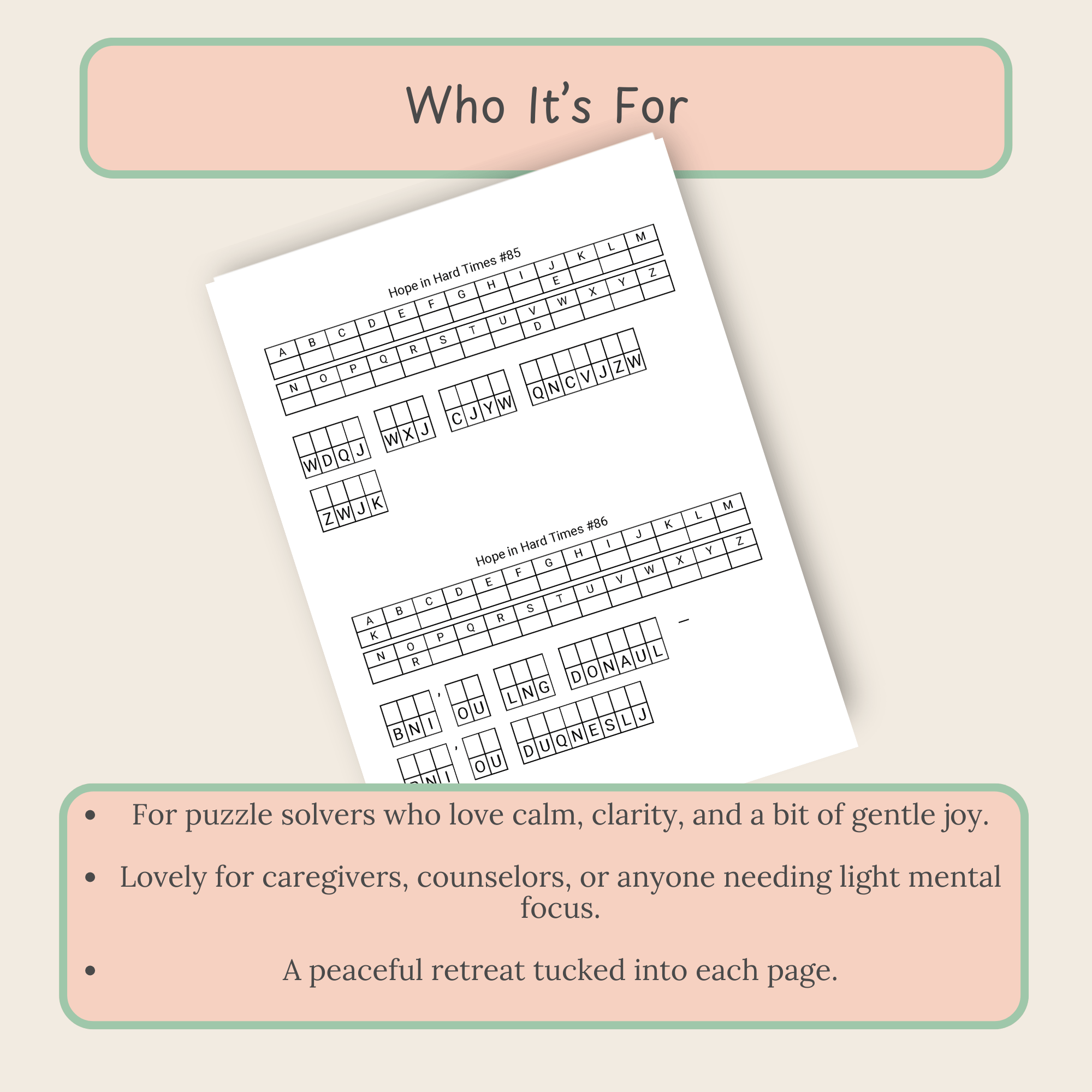As you solve each puzzle, you uncover messages of hope, strength, and encouragement. Each one creates a quiet moment of reflection while still engaging your mind.